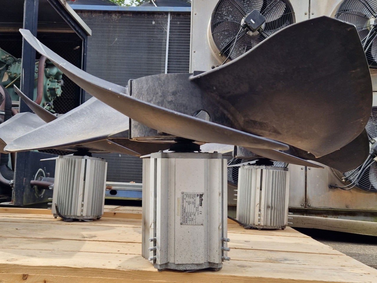 Gebruikte McQuay YDK1200-6Ad ventilator met de volgende specificaties: 50 Hz - 1,2 kW - 940 tpm - diameter 800 mm. Afmetingen: 800x800x440 mm (lxbxh).