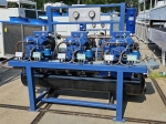 Gebruikte Bock HGX4/555-4 S (x3) semi-hermetische zuigercompressor op Freon. Compleet met zuigaccumulator, Tecnac RH-250E vloeistoftank met een inhoud van 250 liter, 3 olieafscheiders, Henry S-9109-CE oliereservoir, olieniveauregelaars en druk- en veiligheidsschakelaars/meters. De compressor heeft een slagvolume van 144,6 m³/u.