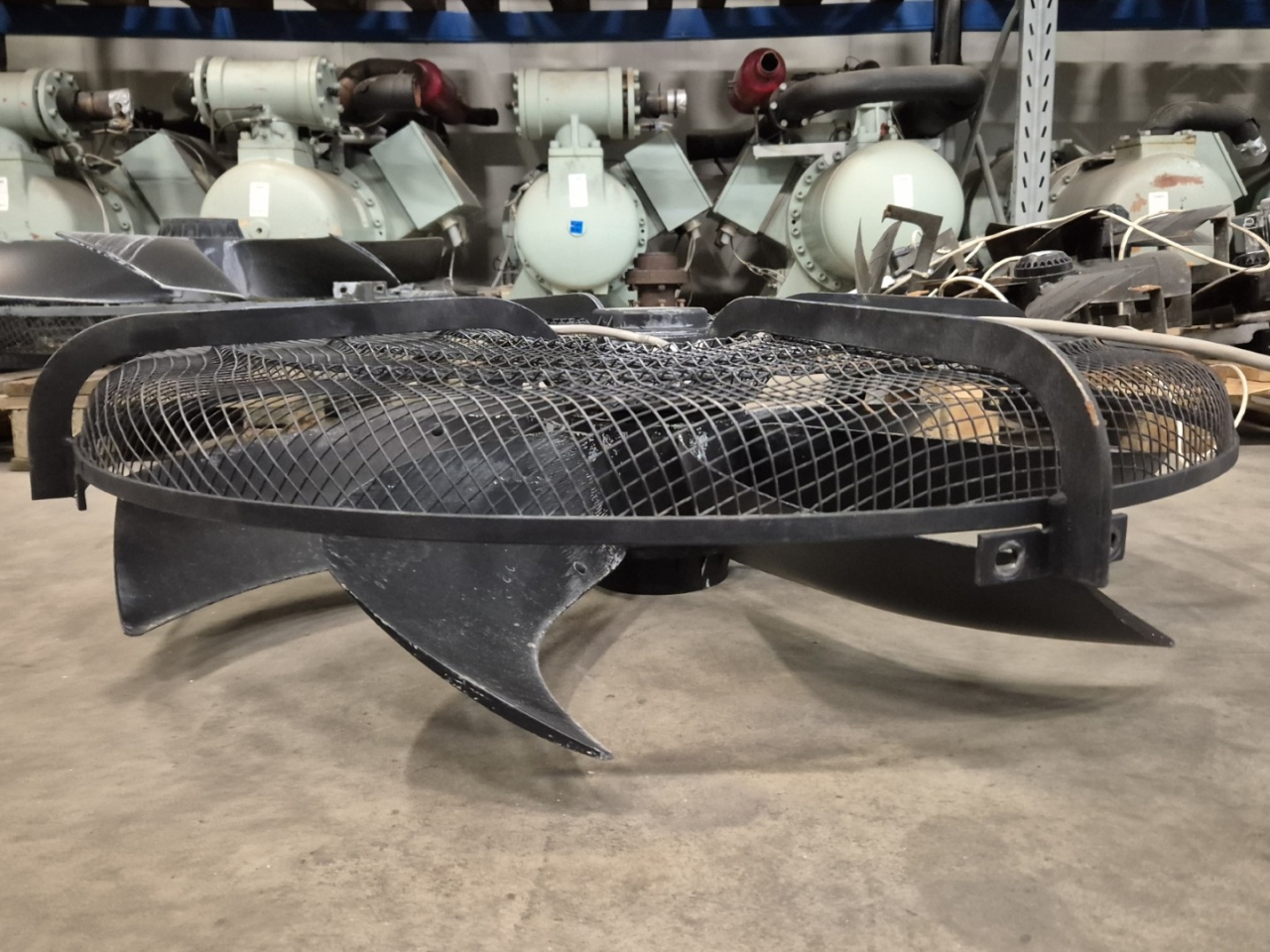 Gebruikte Ziehl-Abegg FE100-NDS.6N.6 ventilator met de volgende specificaties: 50 Hz - 0,86/0,50 kW - 420/310 RPM - diameter 1000 mm.