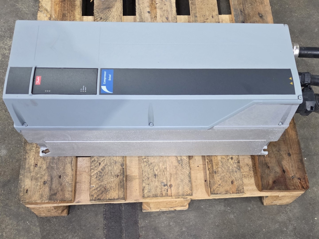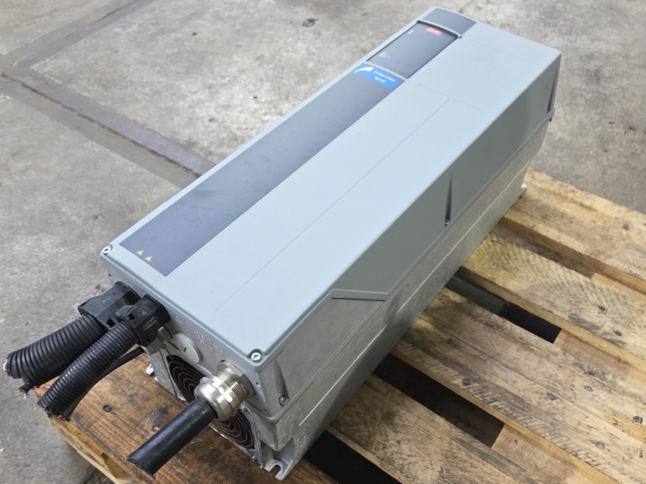 Gebruikte Danfoss CDS CDS303P22KT4P55H2 frequentieregelaar - 30 kW (400 V) / 40 pk (460 V). Onderdeelnr.: 134G4022. Afmetingen: 790 x 240 x 270 mm (LxBxH).