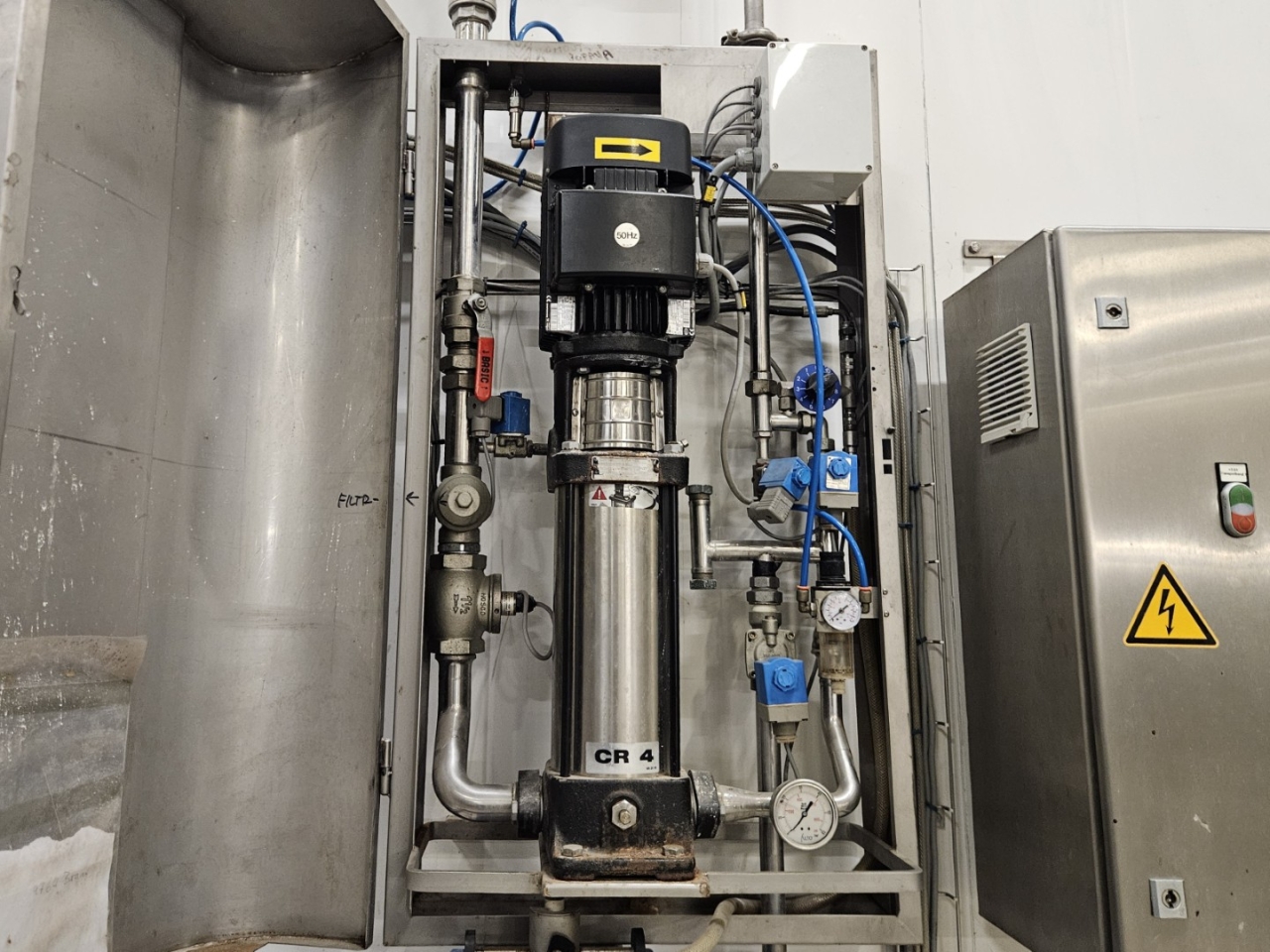 Om optimale hygiëne en prestaties te behouden, is de vriezer voorzien van een bandreinigingssysteem met een Grundfos waterpomp, waardoor de band altijd schoon en efficiënt blijft werken.