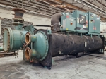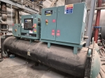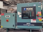 Used York YK ABAC P1 5CE F water-cooled chiller on Freon R134a. Complete with a York YDHF-39DD open-type compressor with direct driven electro motor, York shell and tube as evaporator, York shell and tube as condenser, Grundfos UP 26-99 water pump, York FP5X12-14YORK6 brazed heat exchanger and a control cabinet with a York Optiview Control Center.
