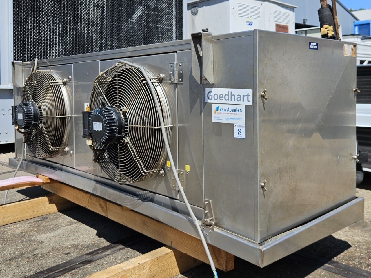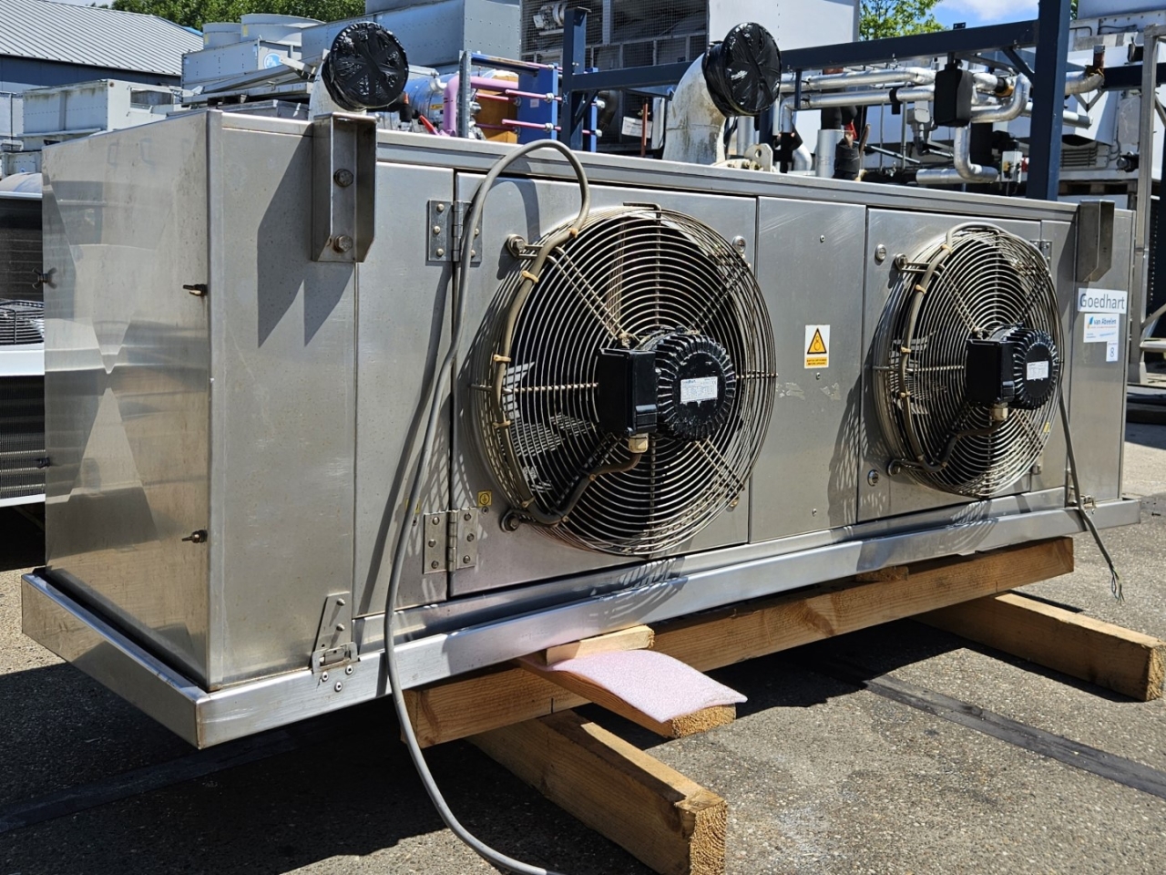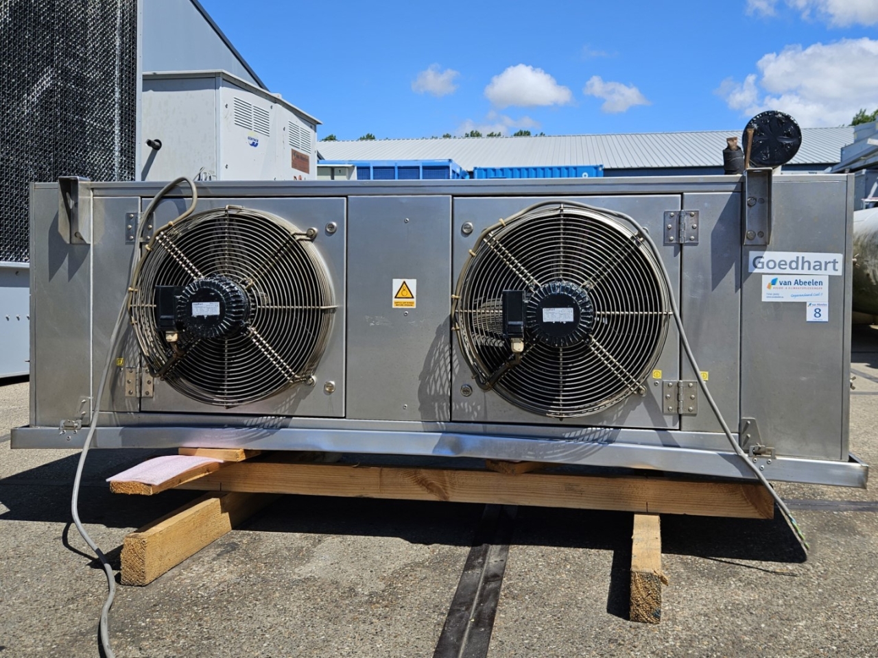 Used Goedhart VCI-82458 evaporator on Freon. Complete with 2 Süd-Electric MDA-P2025-NVN-N fans - 50 Hz - 0,30/0,40 kW - 1050/1350 RPM - diameter 450 mm and a total airflow of 9.794 m³/h.