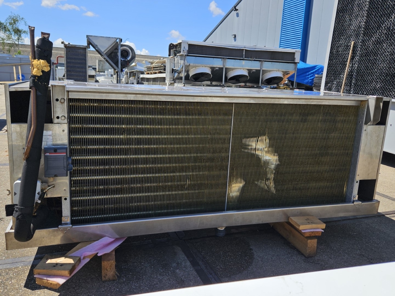 *All components of this used evaporator will be tested on good working, leak free condition (electro engines), coils, bearings. Choosing HOSBV means buying with warranty. We perform a industrial cleaning and rust spots will be covered. Also, we can arrange your shipment.