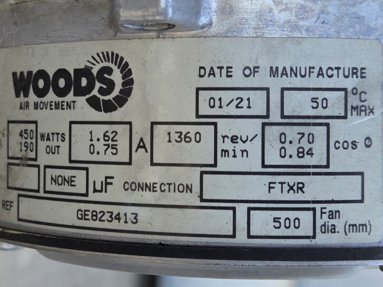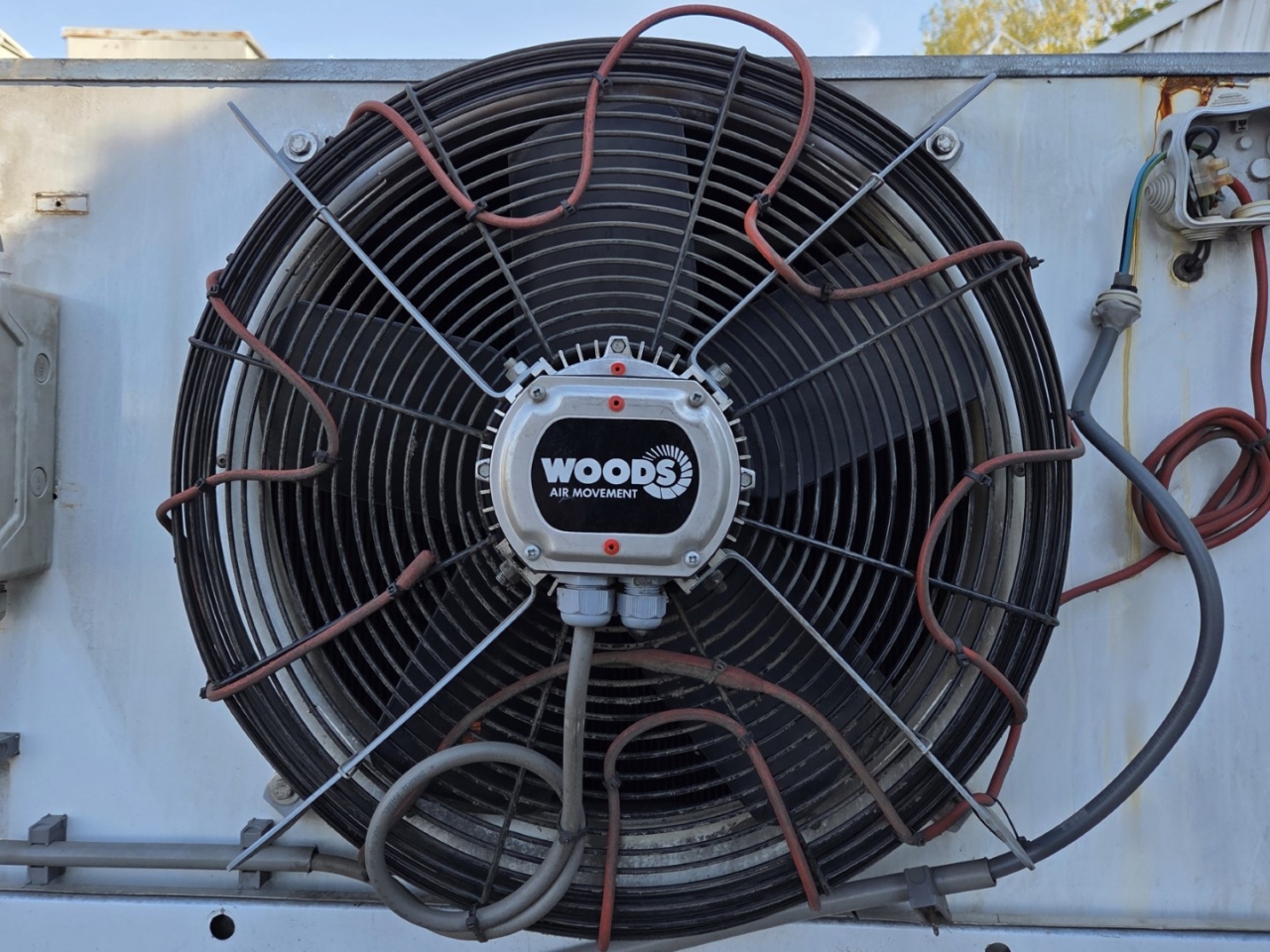 Used Goedhart VCB 83507 Freon evaporator with electric defrost. Complete with 3 Woods fans - 50 Hz - 0,45/0,19 kW - 1360 RPM - diameter 500 mm and a total airflow of 20.333 m³/h.