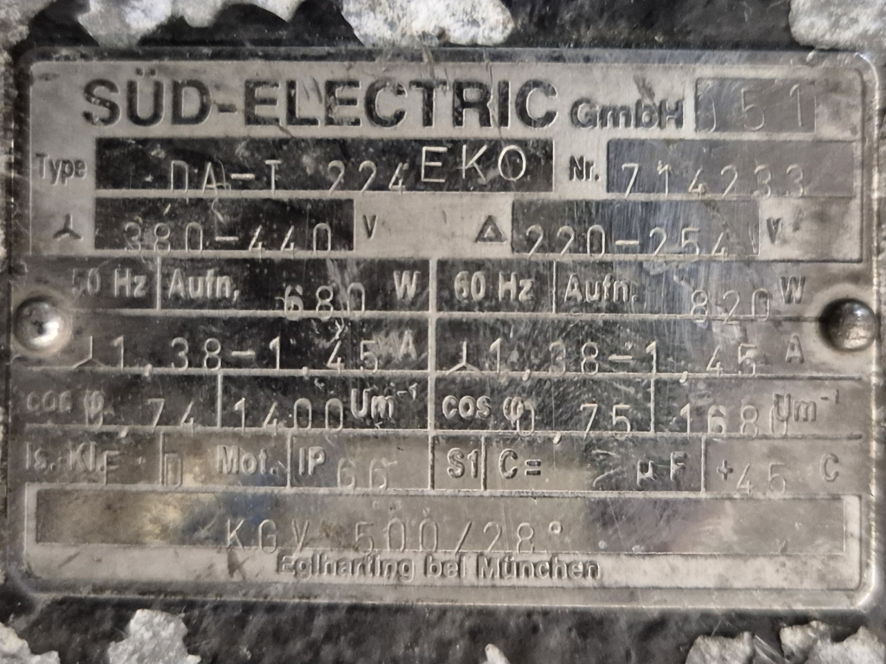 Used Süd-Electric DA-T 224 EKO fan with the following specifications: 50/60 Hz - 0,68/0,82 kW - 1400/1680 RPM - diameter 500 mm.