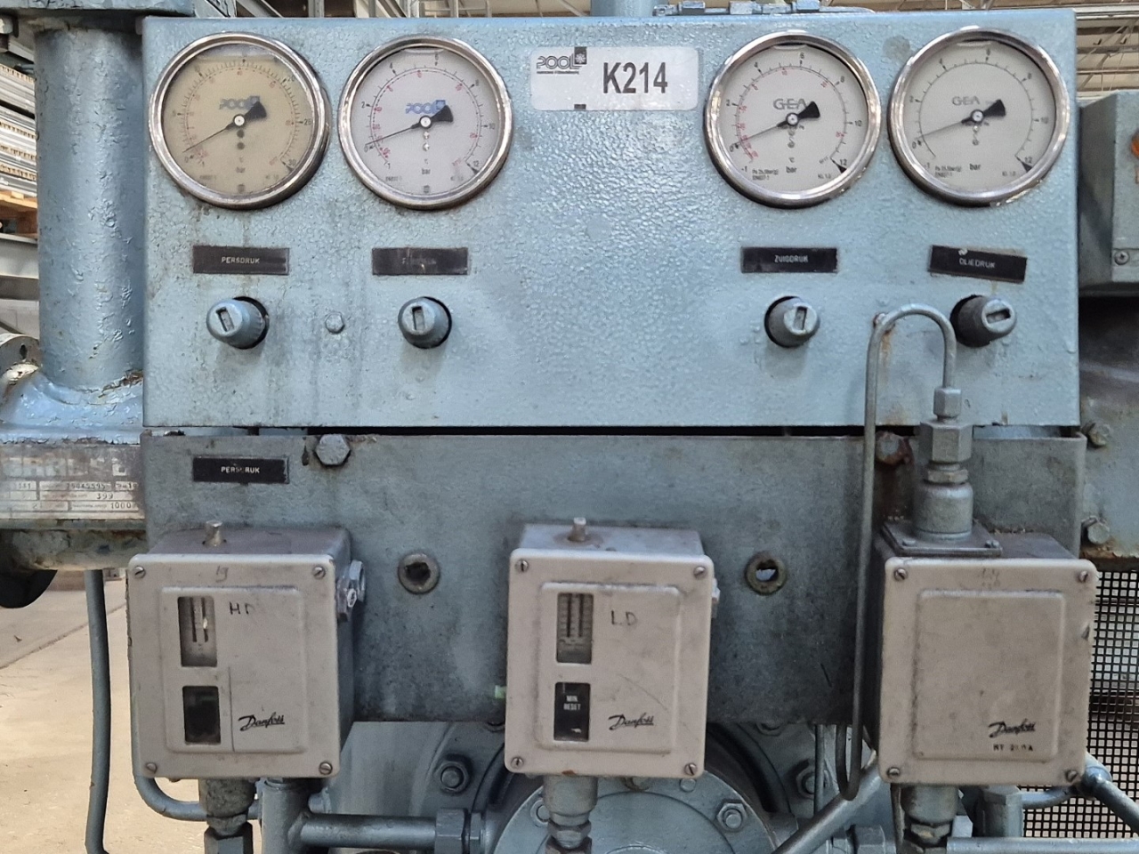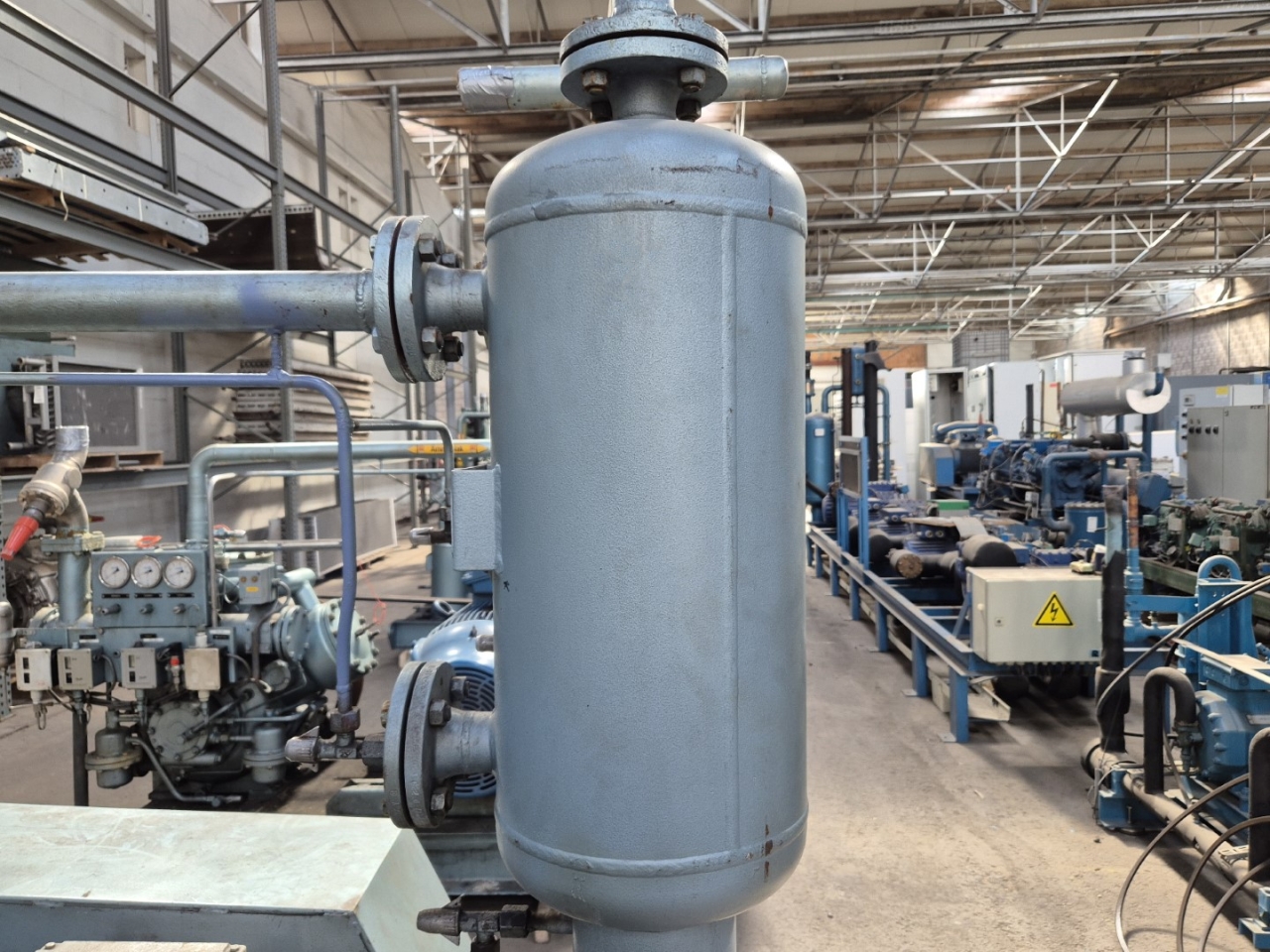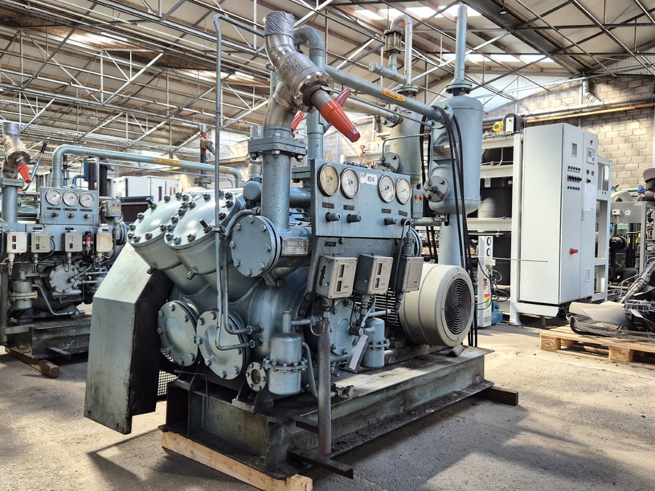 Used Grasso RC 3111 open-type reciprocating compressor on NH3 (Ammonia). Complete with a Rototr.nl electromotor: 50/60 Hz - 55/63 kW - 1475/1775 RPM, Grasso 95.3.209 oil separator with a volume of 51 liters, Grasso 95.3.208 oil separator with a volume of 21 liters, pressure and safety switches/gauges and a sight glass. The compressor has a displacement of 399 m³/h at 1000 RPM. *Capacity based on a condensing temperature of +35ºC and at 867 RPM