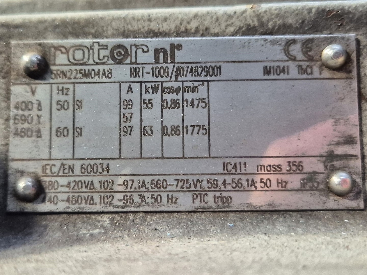 | Silnik elektryczny Specs | 50 Hz - 55 kW - 1475 RPM |
