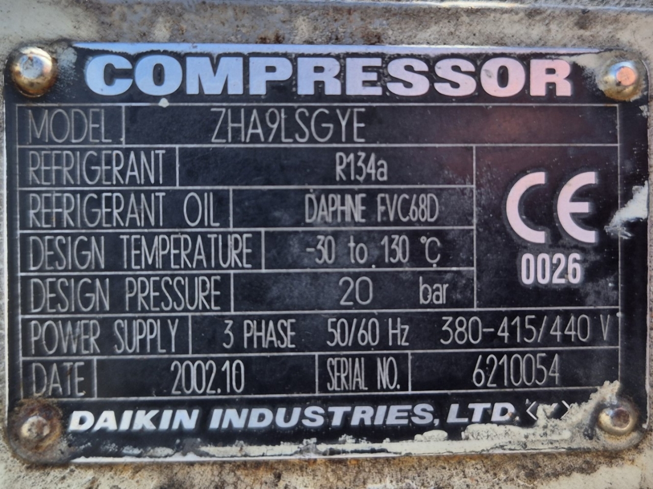 Used Daikin ZHA9LSGYE semi-hermetic screw compressor on Freon.