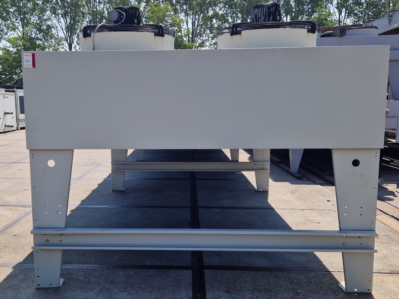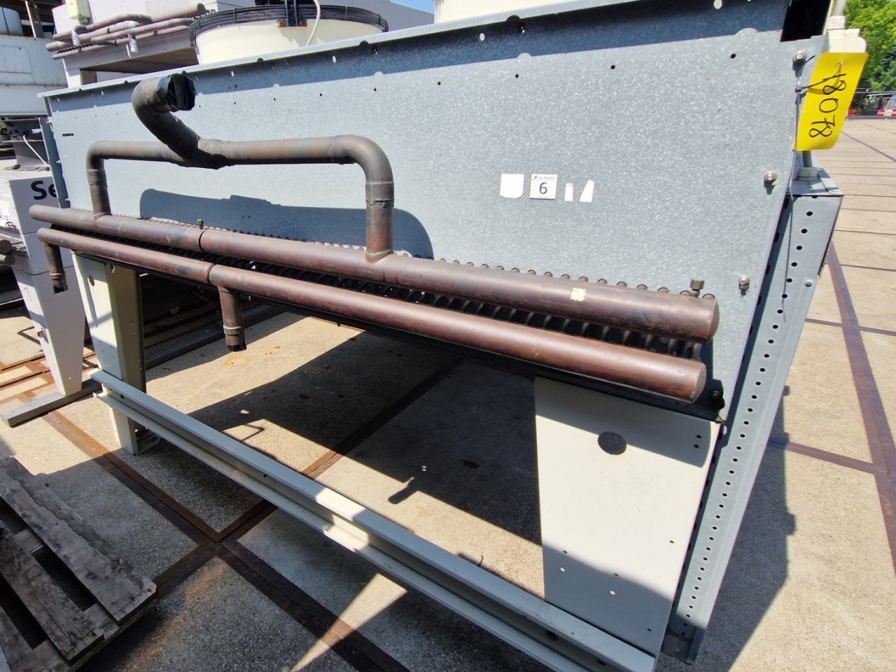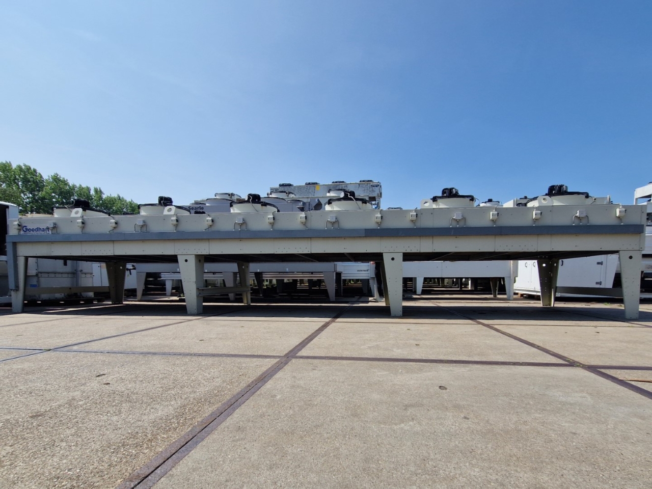 Used Goedhart KOAL-G-E31280D-12PR(D) air-cooled condenser on Freon. Complete with 12 Süd-Electric LSD-080T3-050-PNNBYK fans - 50 Hz - diameter 800 mm and a total airflow of 108.200 m³/h.