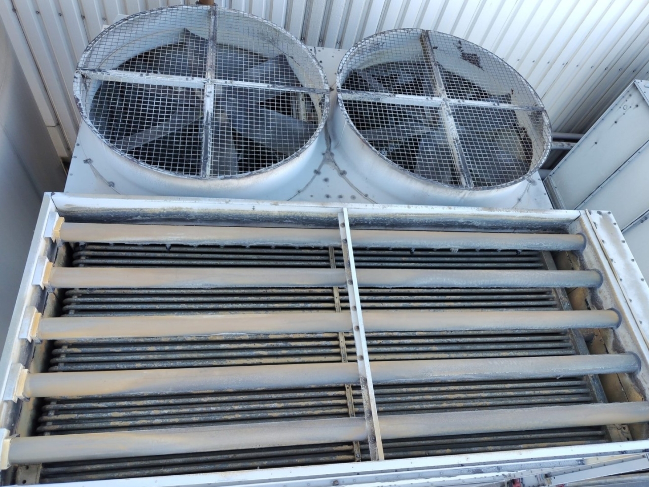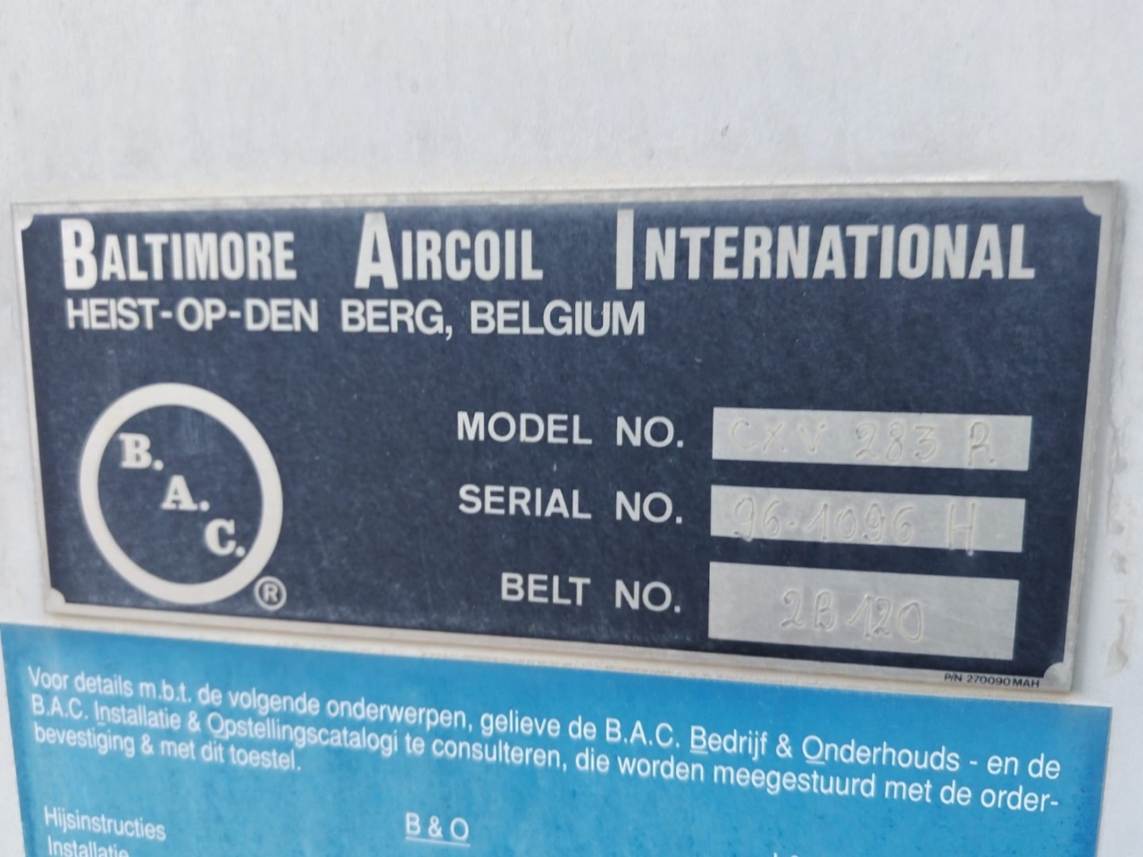 Used Baltimore CXV 283 R evaporating condenser on NH3 (R717). Complete with 2 fans that produce an airflow of 126.000 m³/h.