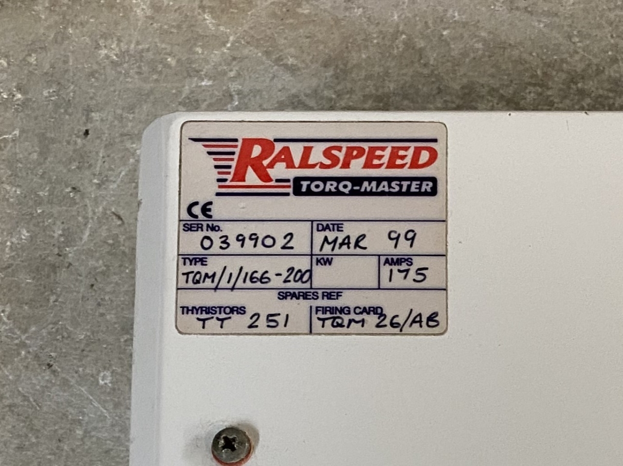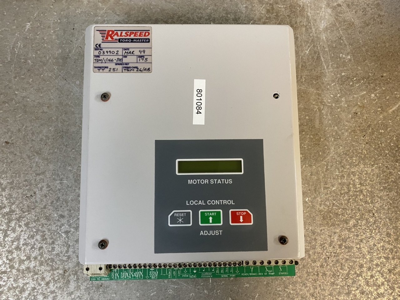 Used Ralspeed TORQ-MASTER TQM/1/166-200 soft starter. Nominal rating: 175 A. Suitable for a motor around 90–100 kW (estimate).