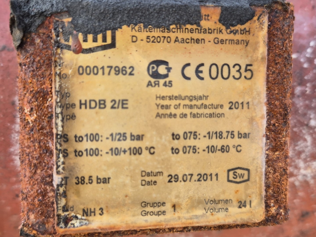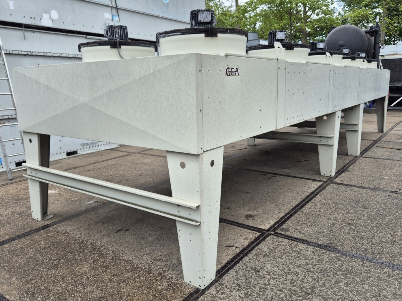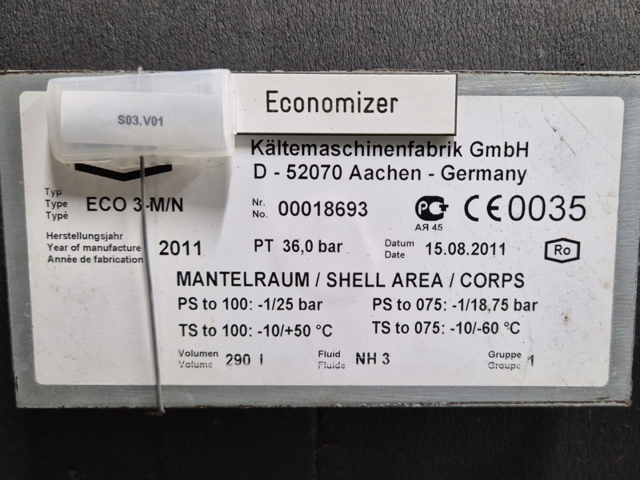 The condenser this set worked with is also available. It is a Goedhart INAL-G-N41080D-B-6p (D) NH3 air-cooled condenser. Complete with 10 Süd-Electric MDB-T3100-NSN-U fans - 50 Hz - 1,5/2,4 kW - 650/900 RPM - diameter 800 mm and a total airflow of 210.120 m³/h. Capacity of 774,2 kW at an air inlet temperature of 25°C and a condensing temperature of 40°C. Condenser can be found through the following link: 17981