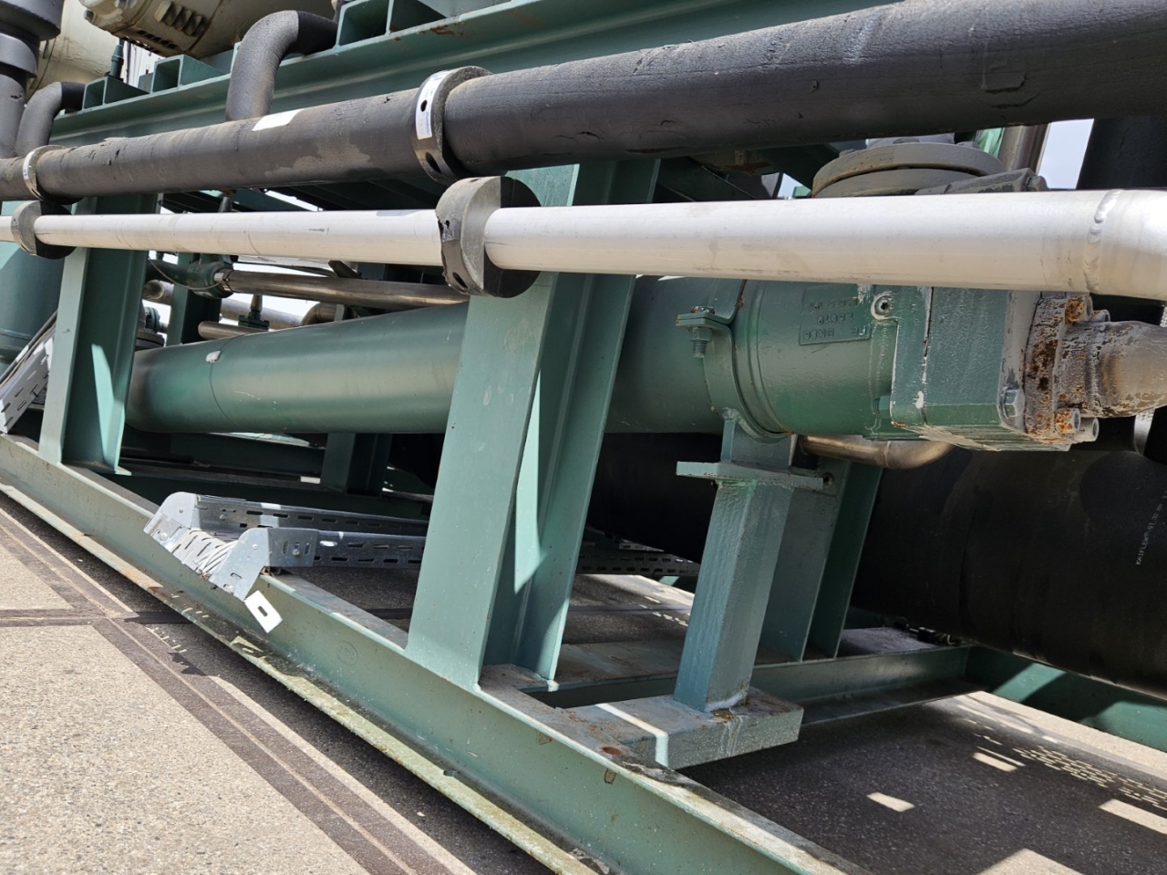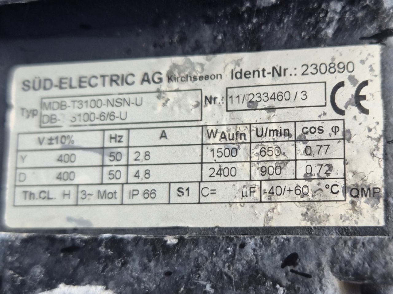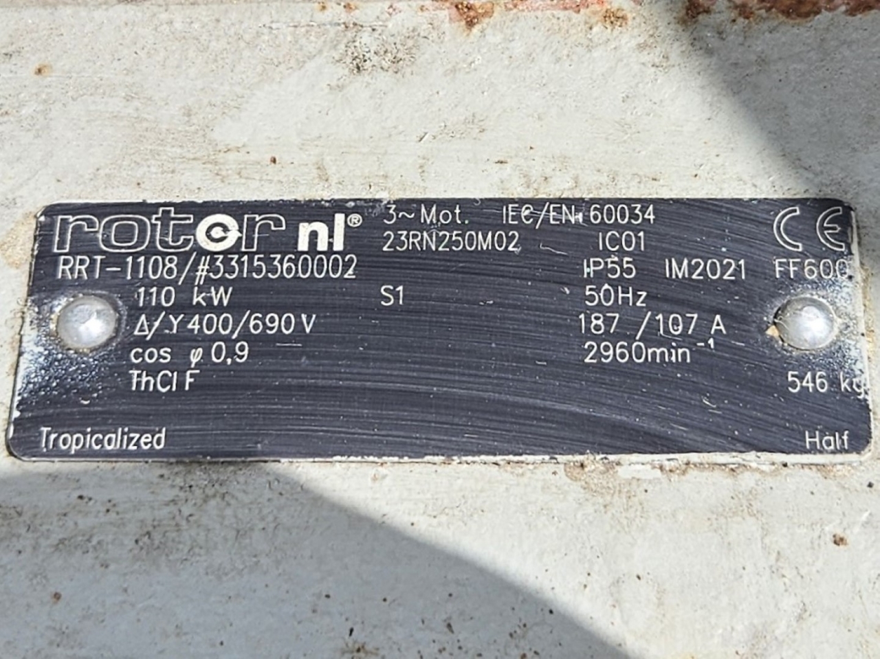 The condenser this set worked with is also available. It is a Goedhart INAL-G-N41080D-B-6p (D) NH3 air-cooled condenser. Complete with 10 Süd-Electric MDB-T3100-NSN-U fans - 50 Hz - 1,5/2,4 kW - 650/900 RPM - diameter 800 mm and a total airflow of 210.120 m³/h. Capacity of 774,2 kW at an air inlet temperature of 25°C and a condensing temperature of 40°C. Condenser can be found through the following link: 17981