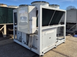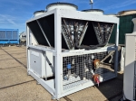 Used Thermocold Domino EXR 2140Z H SL air to water heat pump on R410A. Complete with 4x Danfoss PSH034A4CLC scroll compressors, heat exchanger with 4 EBM-Papst fans that produce an airflow of 88.640 m³/h, brazed heat exchanger with a water flow of 23 m³/h, liquid receivers and a control cabinet with a Dixell VGIPG 1P000 controller.